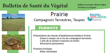 Le BSV "Prairie" est une analyse à un instant donné et à l’échelle régionale de la situation des prairies face aux pullulations de campagnols terrestres et de taupes. Il contient la description de la situation phytosanitaire, l’analyse de risque, le résumé de la situation épidémiologique décrite par les modèles et les seuils de risque.